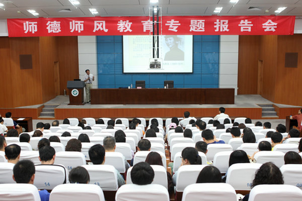 为进一步加强师德师风建设,根据学校“文化建设年活动”要求,结合2014年新聘教职工培训工作安排,6月4日下午,学校邀请山东师范大学政治与国际关系学院思想政治教研部主任,硕士生导师任者春教授做了《师道·师德·师风:当今时代环境下我们如何做教师》的专题报告。