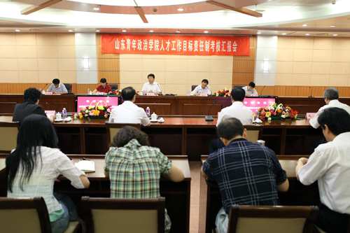 6月2日,省高校人才工作目标责任制考核组一行5人在组长青岛理工大学副校长李国华的带领下,莅临我院对2010年人才工作目标责任制落实情况进行考核。院领导张涛、尹方、赵熙山、刘先义、化旭、李章泉、高峰以及全体处级以上干部、具有高级专业技术职务的同志参加了汇报会。