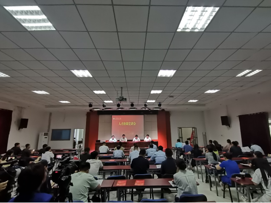 为深入贯彻落实学校“1158”发展战略,充分发挥地方人才政策优势,更好的为高层次人才做好服务保障,学校人事处(人才工作办公室)特邀请中共济南市历城区委人才工作领导小组办公室、山东稼轩人才发展集团于6月5日下午来我校开展济南市、历城区等人才政策宣讲。各学院分管人才工作的班子成员、博士代表以及各单位人事专员80余人参加了宣讲会。同时,为了扩大人才政策宣讲受益面,便于更多教职工了解、掌握人才政策,宣讲会还采取了线上同步直播的方式进行。
