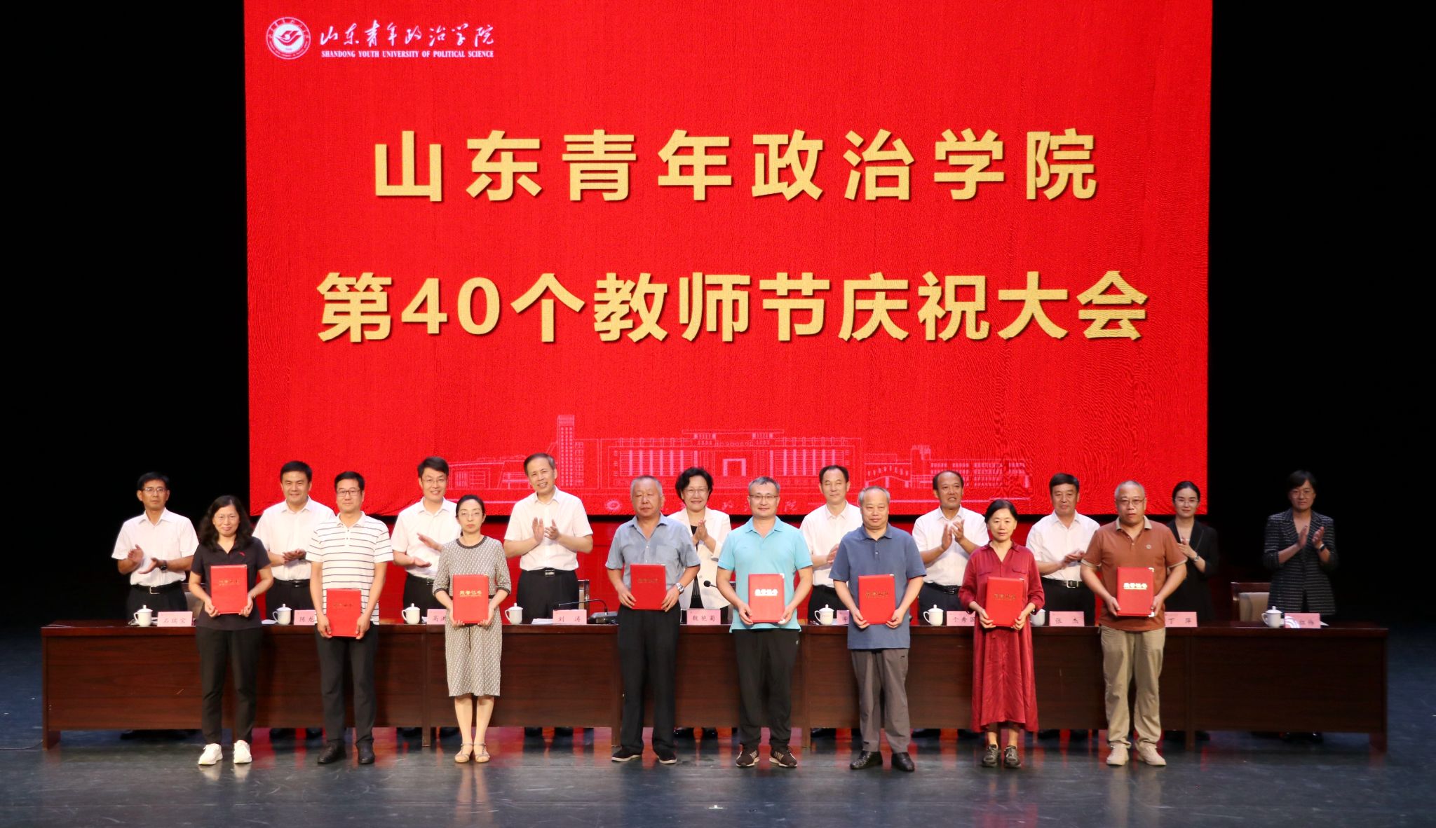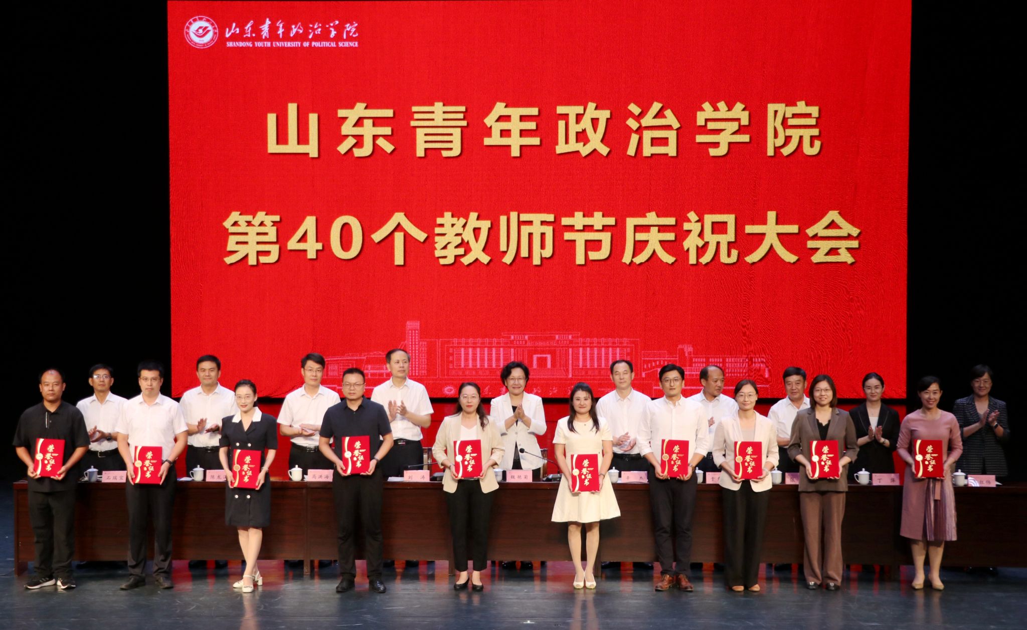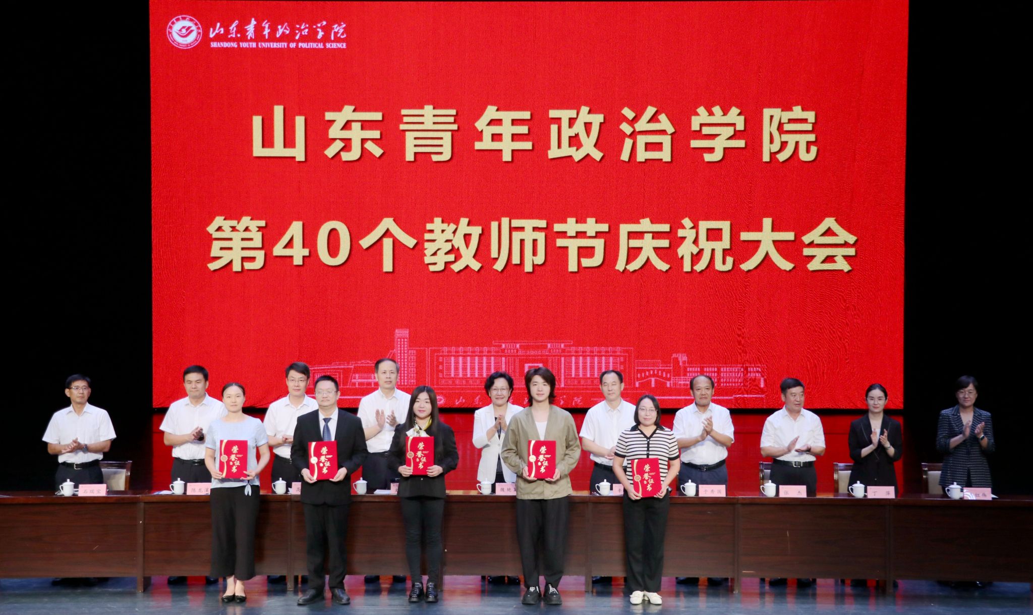 9月5日,在第40个教师节来临之际,山东青年政治学院在山青剧院举行第40个教师节庆祝大会。学校党委书记魏艳菊主持会议,党委副书记、院长辛杰发表讲话,党委副书记刘涛宣读学校表彰决定。学校领导班子成员,各学院、各部门负责同志,受表彰的先进个人和团队,教师代表参会。大会对获得省部级以上荣誉成果的教师及团队、学校师德标兵、优秀教师及优秀教育工作者进行了表彰,并向从事教育教学工作满30周年的教职工颁发了荣誉证书。