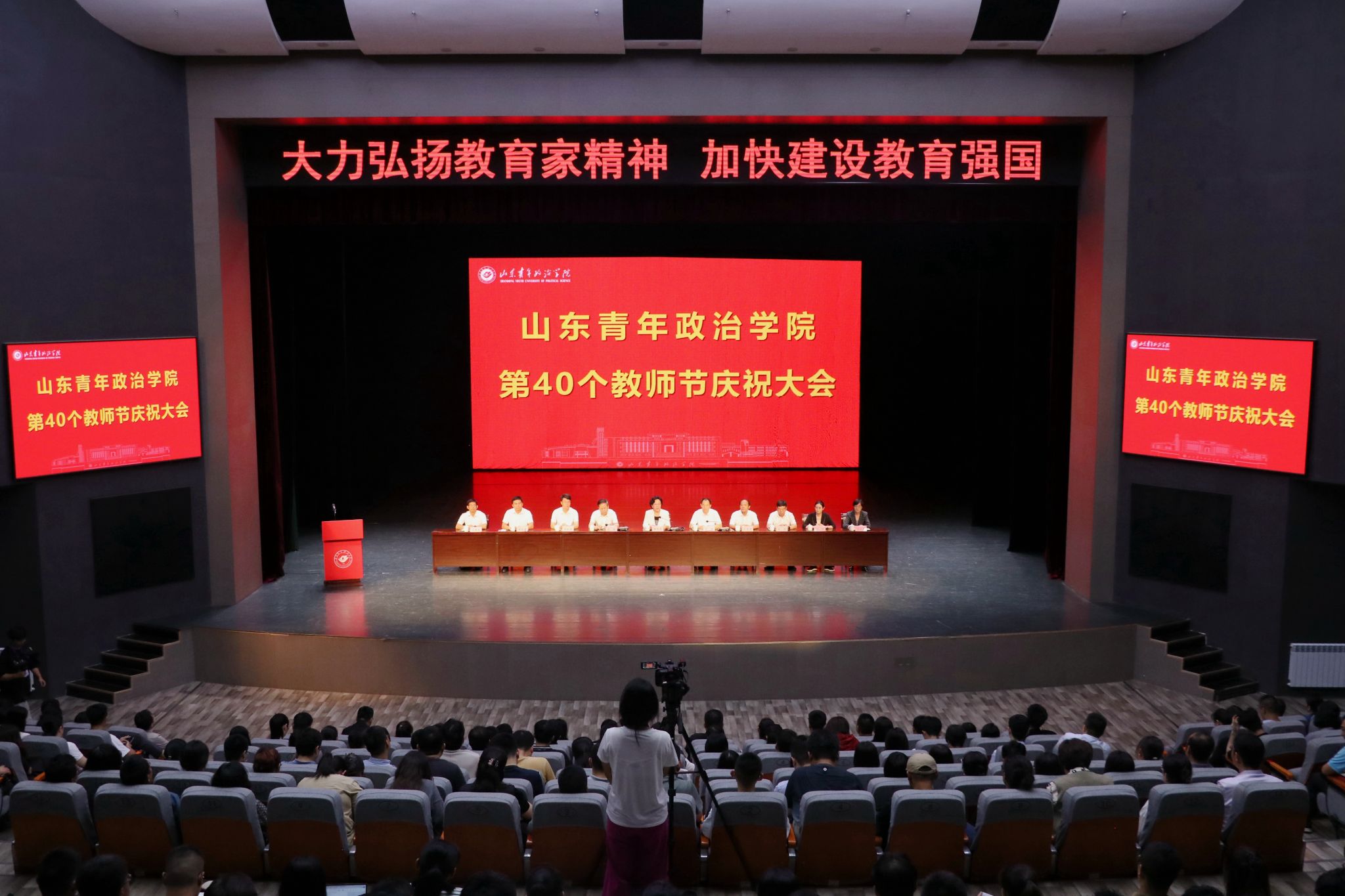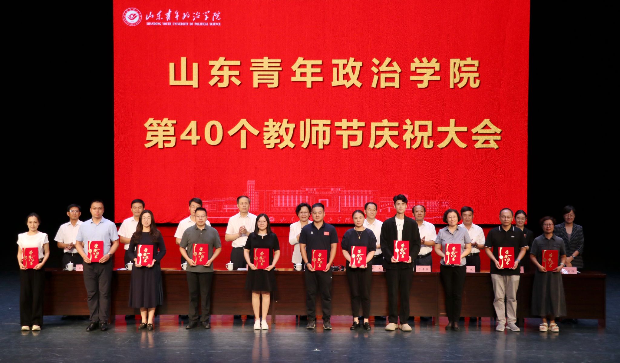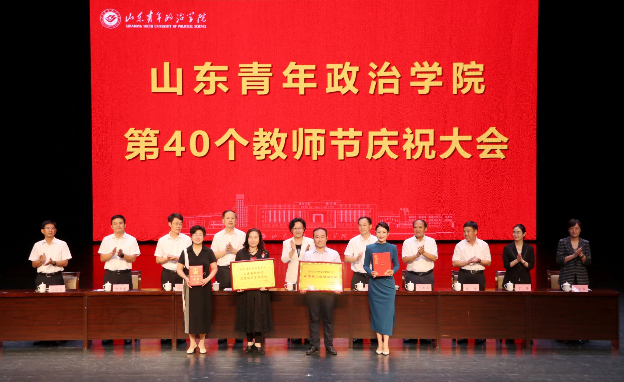 9月5日,在第40个教师节来临之际,山东青年政治学院在山青剧院举行第40个教师节庆祝大会。学校党委书记魏艳菊主持会议,党委副书记、院长辛杰发表讲话,党委副书记刘涛宣读学校表彰决定。学校领导班子成员,各学院、各部门负责同志,受表彰的先进个人和团队,教师代表参会。大会对获得省部级以上荣誉成果的教师及团队、学校师德标兵、优秀教师及优秀教育工作者进行了表彰,并向从事教育教学工作满30周年的教职工颁发了荣誉证书。