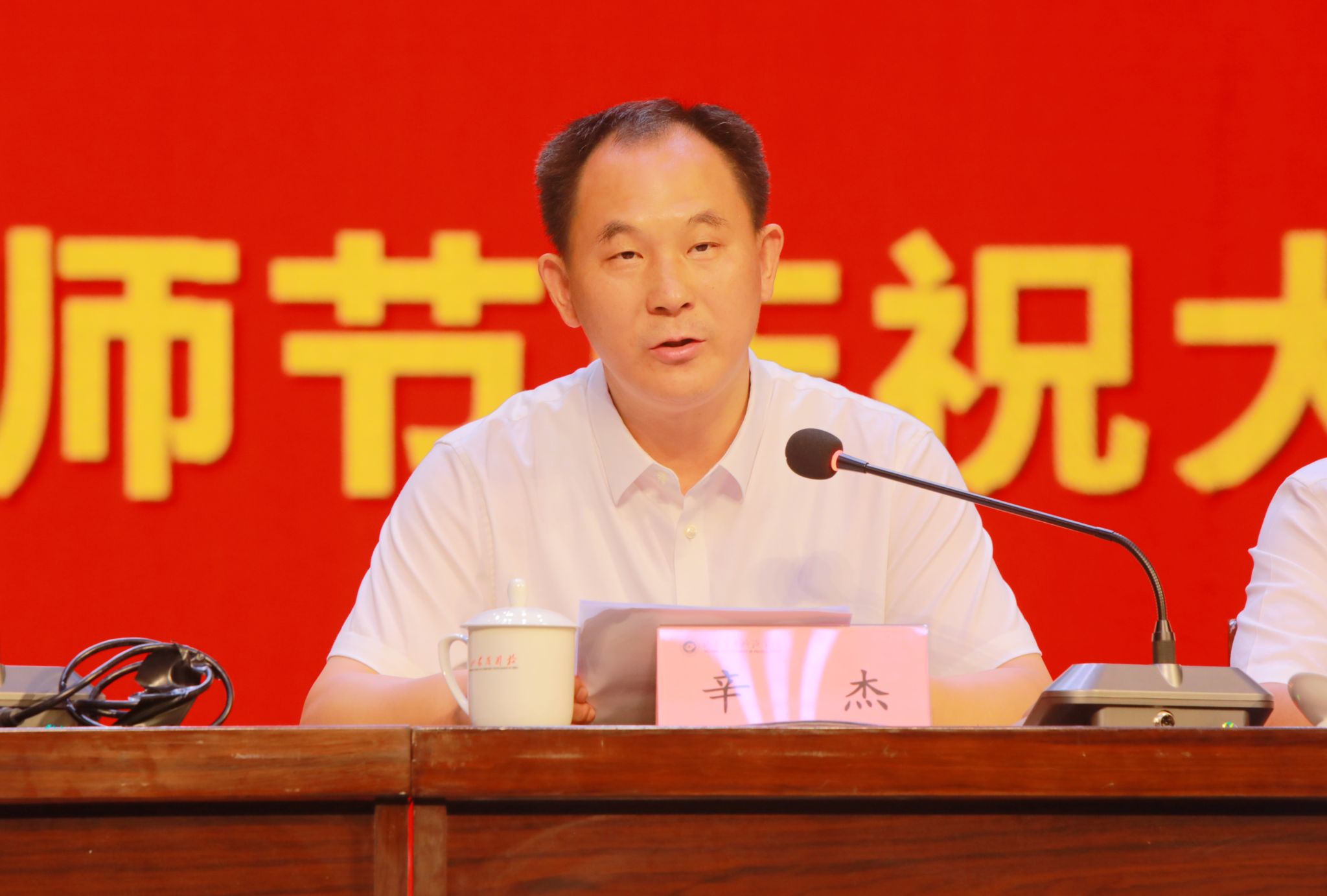 辛杰在讲话中围绕“大力弘扬教育家精神,加快建设教育强国”,从心有大我、至诚报国的理想信念,言为士则、行为世范的道德情操,启智润心、因材施教的育人智慧,勤学笃行、求是创新的躬耕态度,乐教爱生、甘于奉献的仁爱之心,胸怀天下、以文化人的弘道追求等六个维度对教育家精神进行了具体阐释,对广大教师自觉践行教育家精神提出了殷切希望和要求,勉励大家始终把“老师”作为第一身份,把“师德”作为第一标准,把“育人”作为第一要务,把“治学”作为第一追求,在教书育人的工作中不断创造新佳绩。